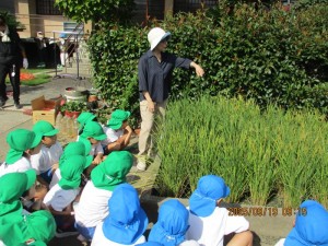 9月19日、年長組が稲刈りを行いました。今年は酷暑の影響か、あまり実入りが良くな...
