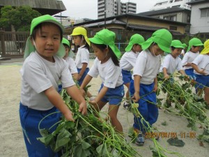 年中組が育ててきたサツマイモが収穫の時期を迎えました。9月25日に蔓遊びを楽しん...