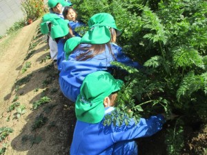12月12日、年長組がニンジンの収穫を行いました。種から蒔いて大切に育ててきたニ...