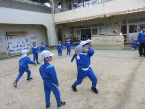 3月10日、年長組がドッジボール大会をしました。各クラスを2チームに分けて勝ち抜...