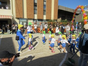10月23日、園庭にて運動会を行いました。前日が雨の一日になり、お天気の回復が心...
